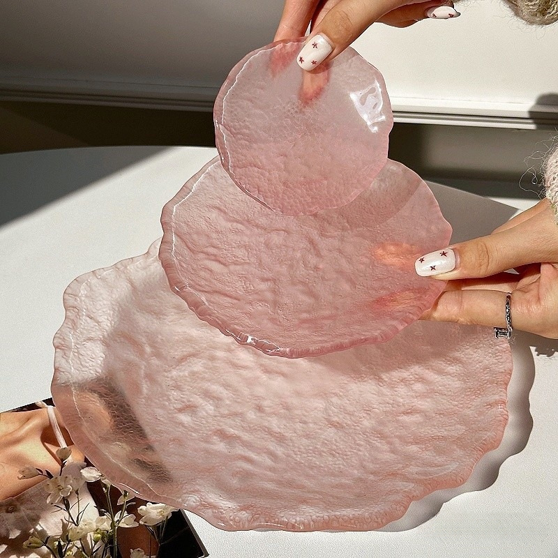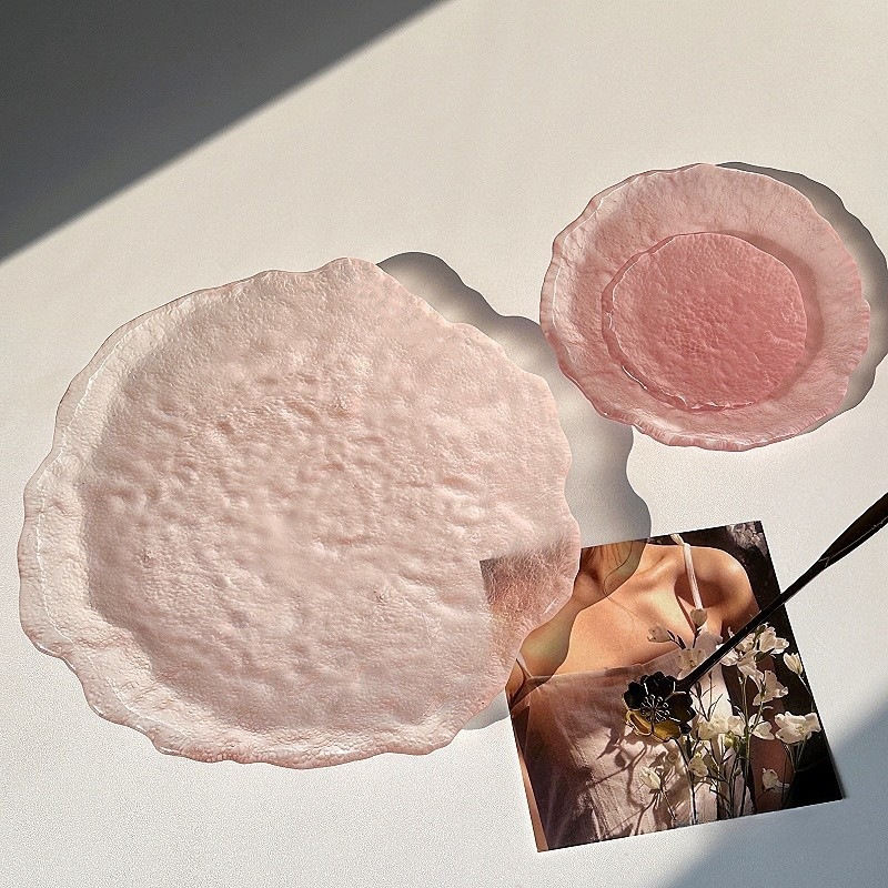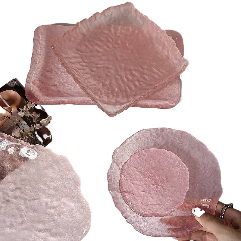 ins风粉色不规则冰川盘风家用精致高级感点心碟水果蛋糕甜品盘子