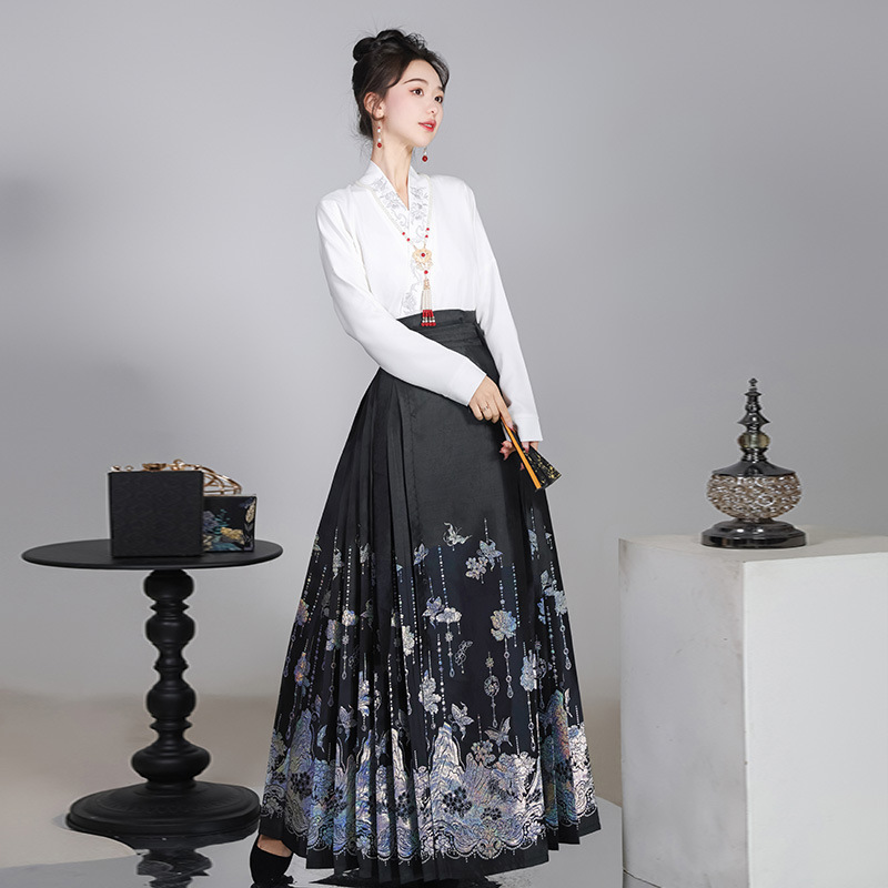 洛竹汉服【步步生花】原创螺钿新中式马面裙套装飞机袖日常通勤明