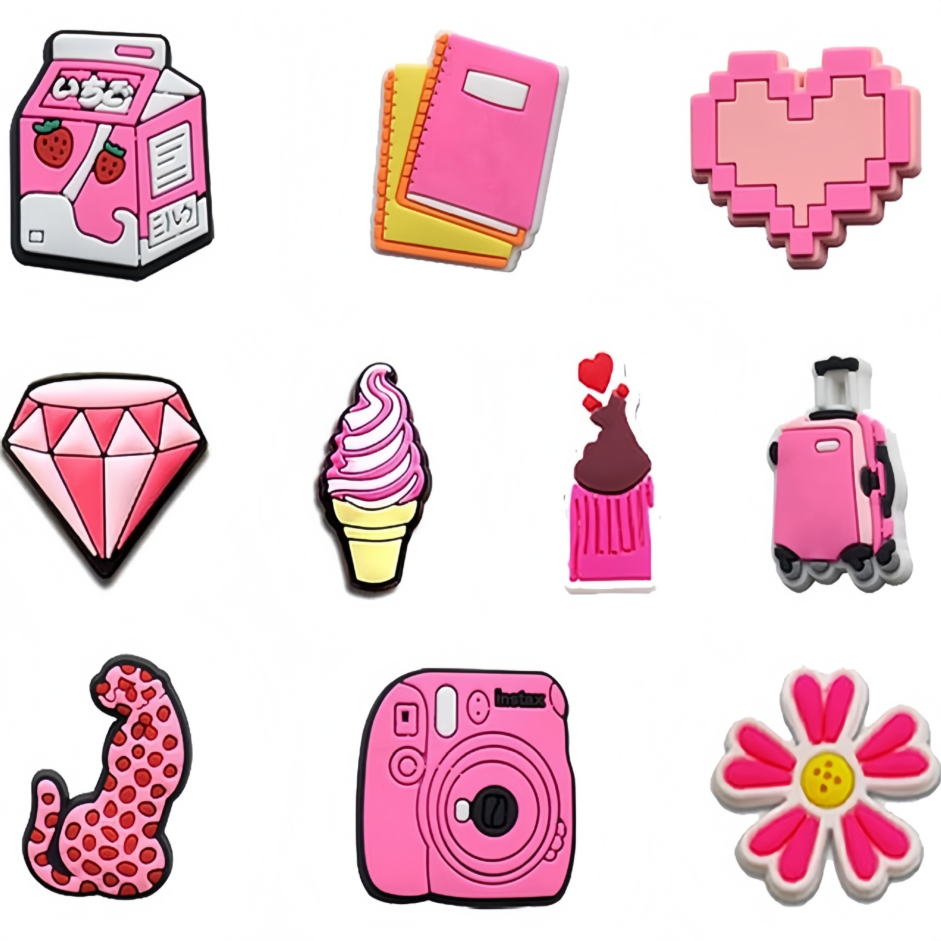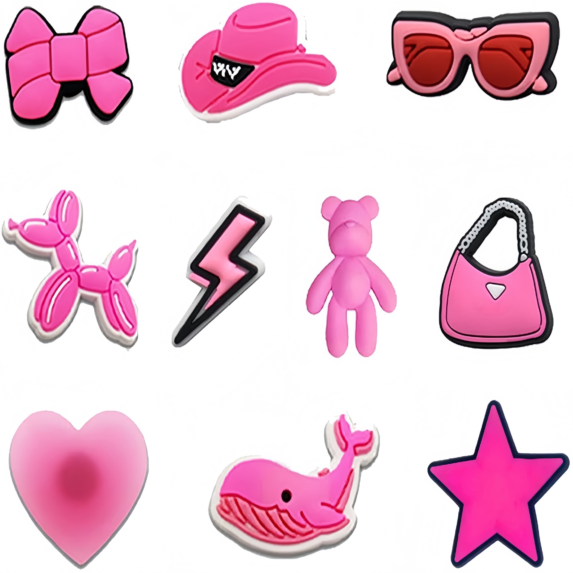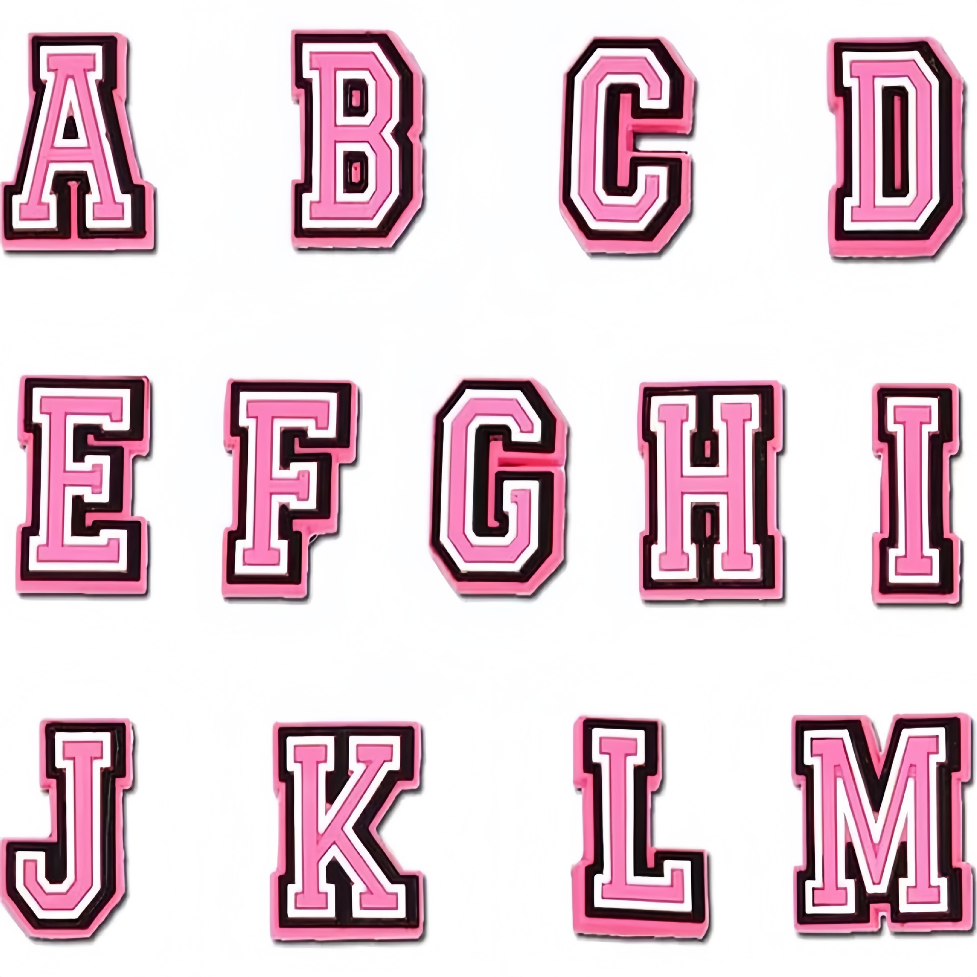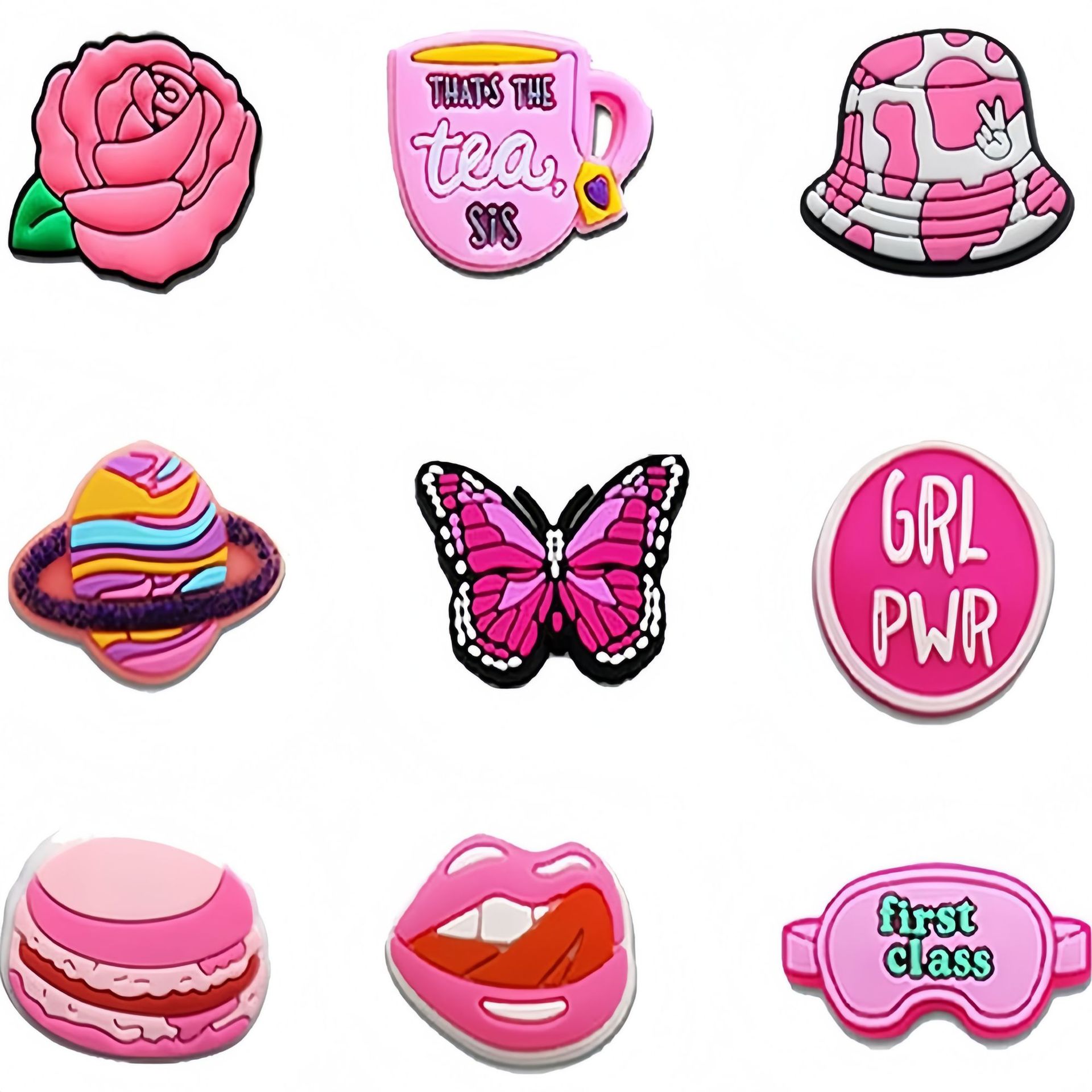 粉红色鞋花pvc可爱粉红字母洞洞鞋花鞋扣装饰DIY配件贴片跨境现货