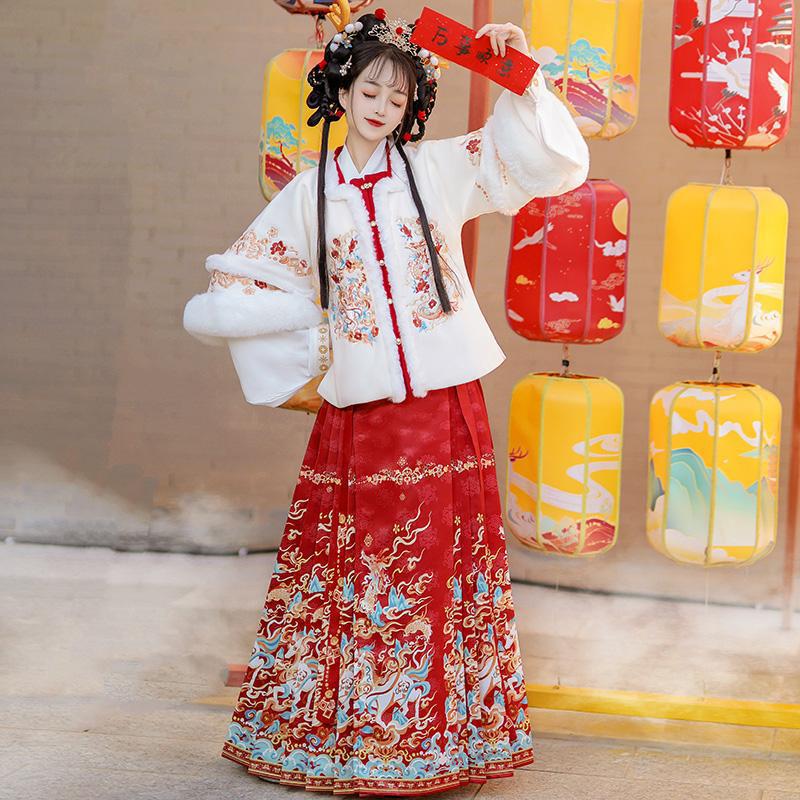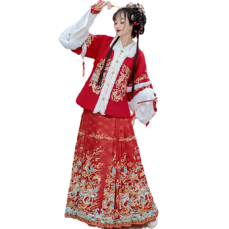 颜色岁宁 红色 上袄+里衣+马面裙+毛领