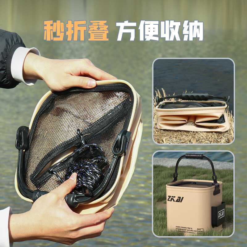 打水桶多功能可折叠装鱼桶路亚野钓鱼护便携手提桶外贸工厂供应链