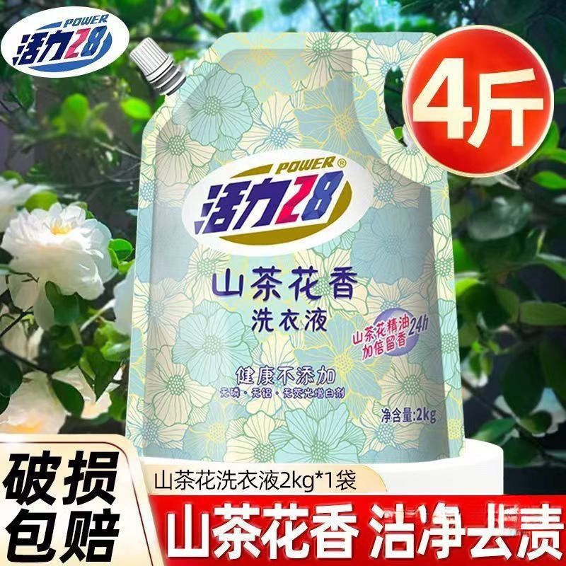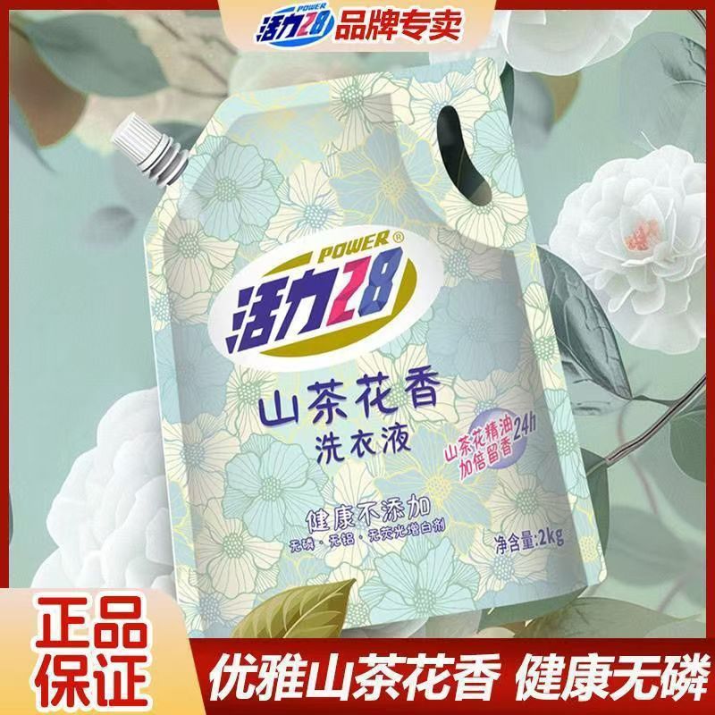 活力28山茶花香氛洗衣液2kg持久留香去污家庭袋装家用实惠包邮