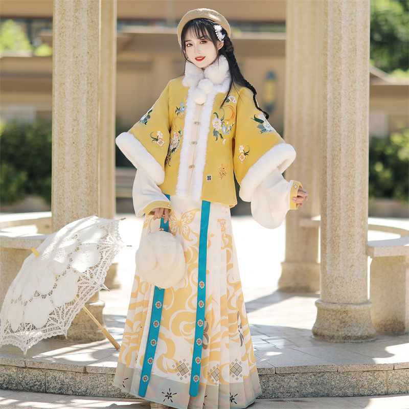 锦瑟流年原创明制袄裙汉服女2025新款冬季改良加厚马面裙套装古装