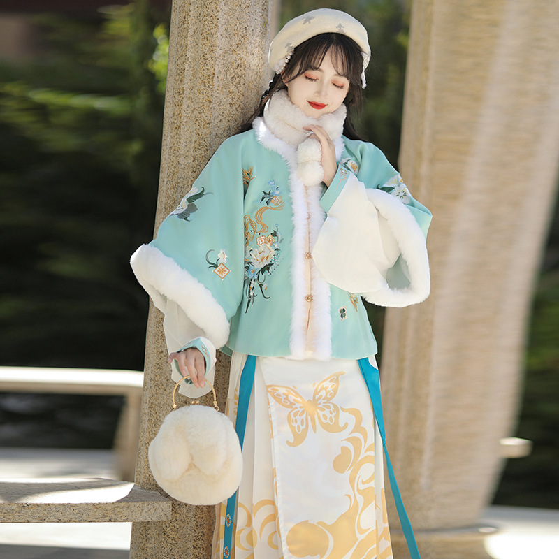 颜色 | 锦瑟流年 蓝色套装【马面裙+比甲+里衣+毛领】 | | 颜色 | 锦瑟流年 红色 加厚半袖上袄 |