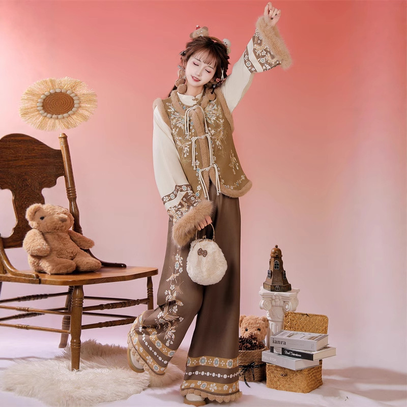 原创新中式汉服女2025新款冬季加绒日常可上班穿的改良宋裤套装