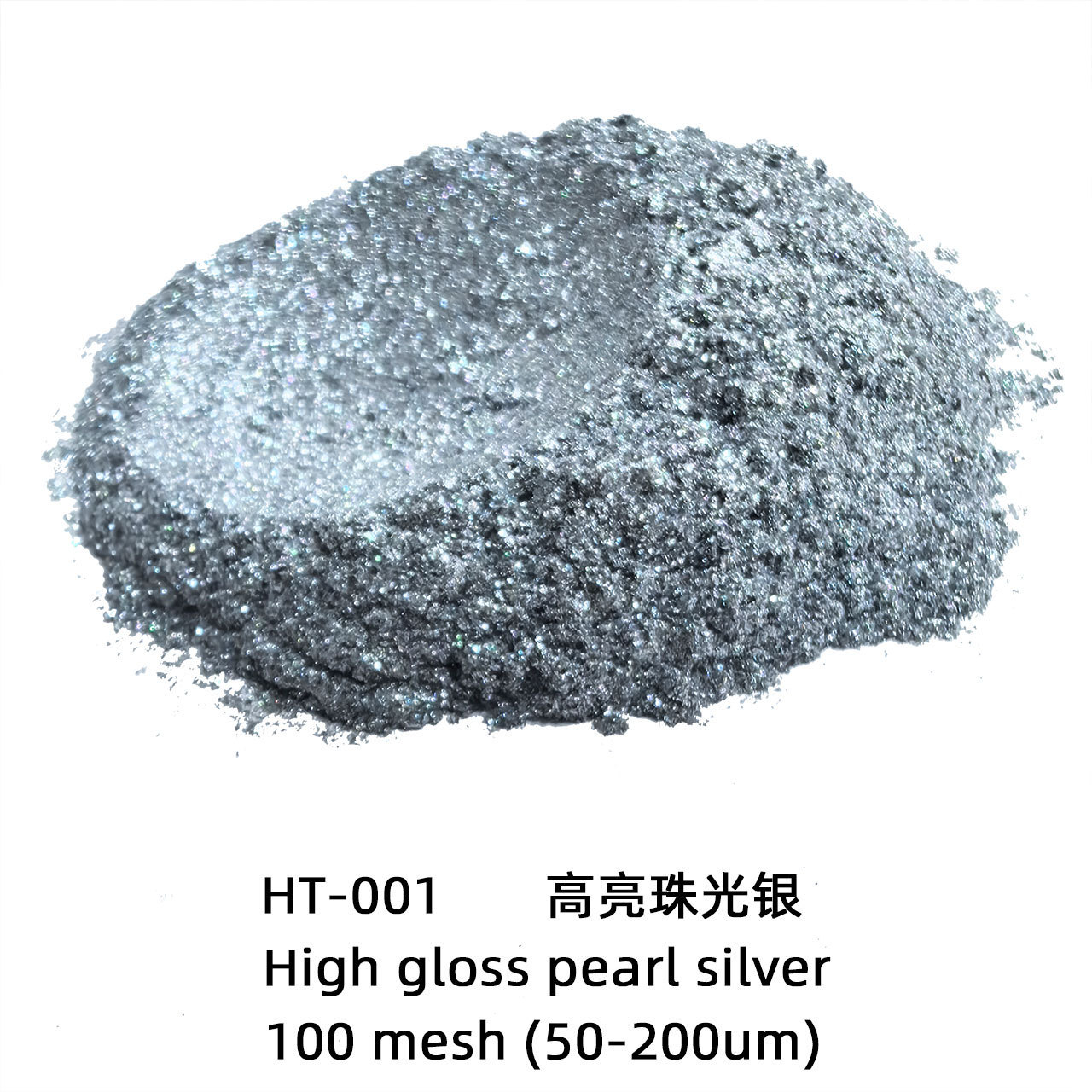 | 适用范围 | 抽粒,注塑,丝印,涂料,油墨,水晶滴胶,绘画新材料 | 规格 | HT001高亮珠光银-特闪烁50g-推荐 |