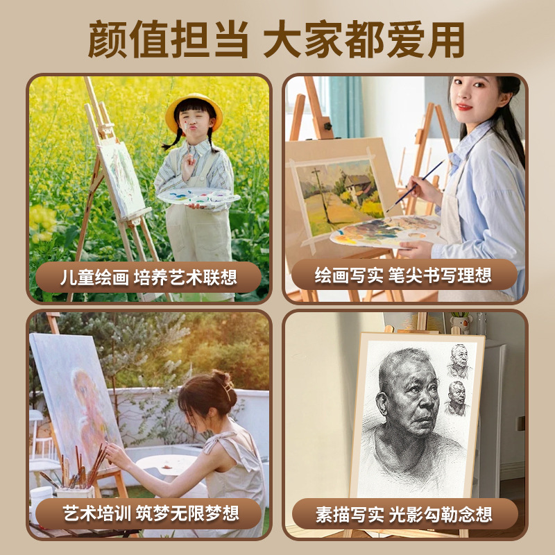 颜色 | 120cm画架+8K实心画板+素描纸+夹子 | | 颜色 | 150 黄松抽屉画架+4K画板+4K180g素描纸+2个夹子 |