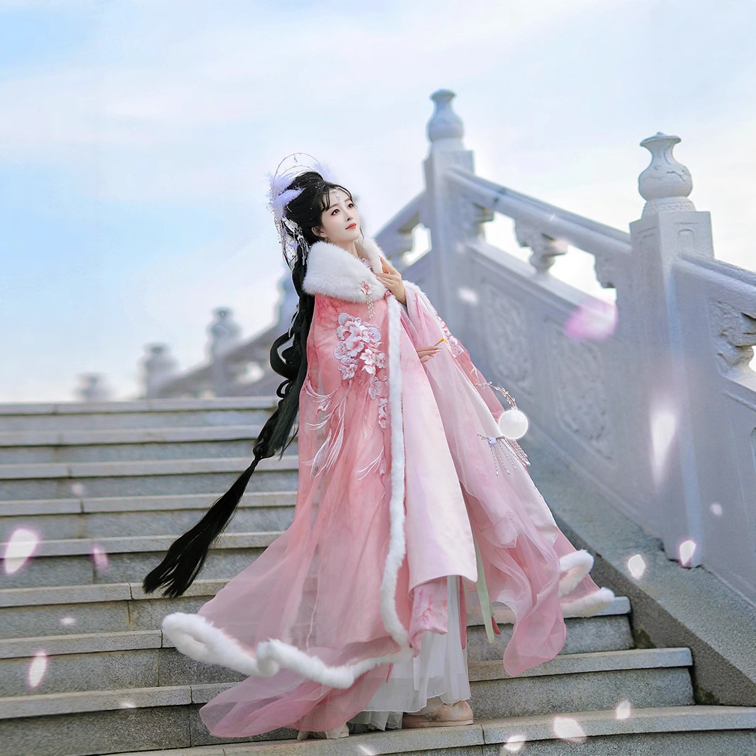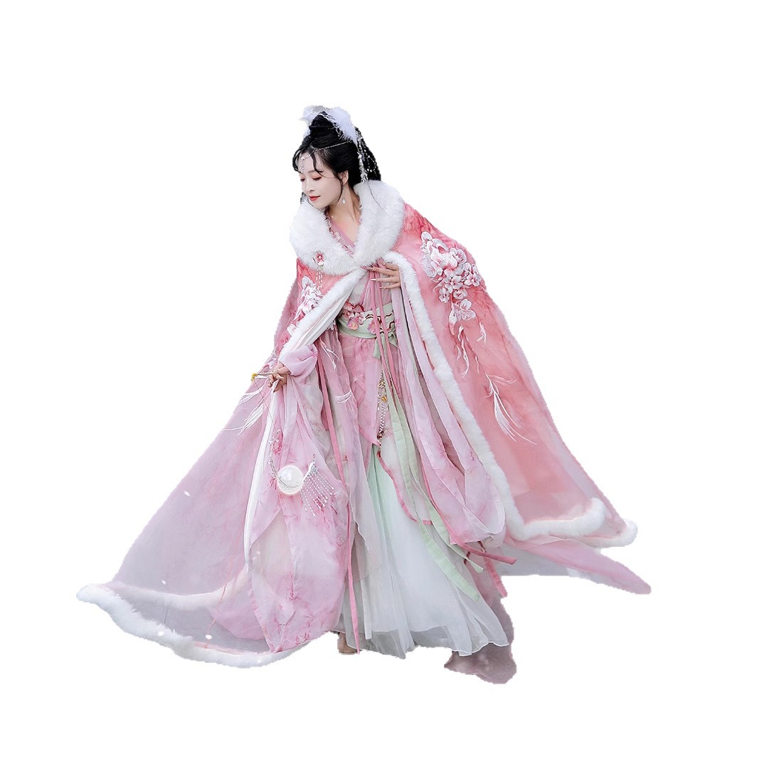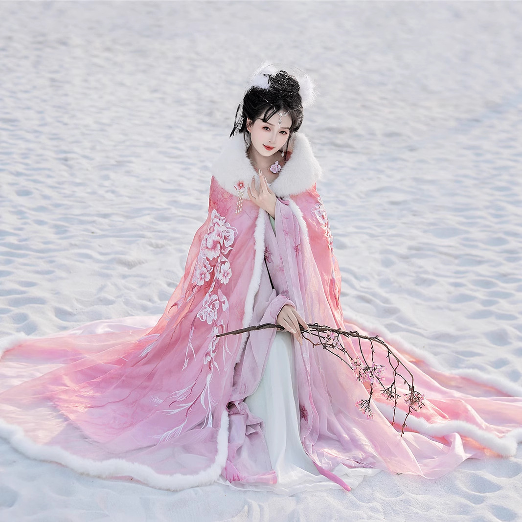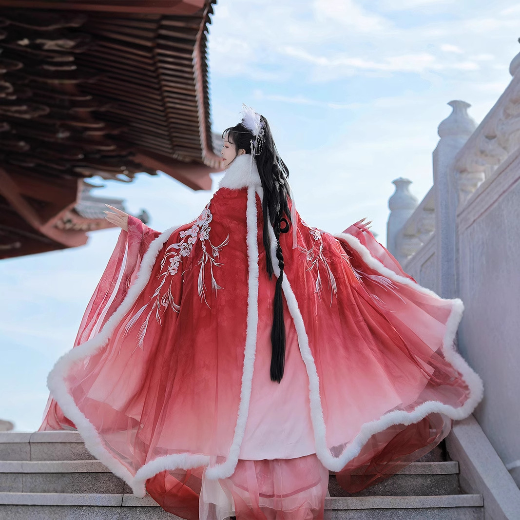洛竹原创汉服女梅映春雪仙女交领齐腰裙仙气加绒保暖披风斗篷