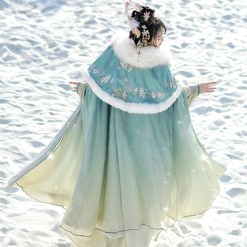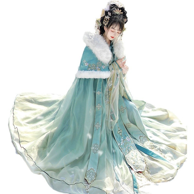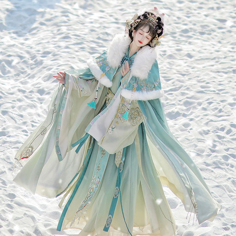 原创汉服女【雪域神女】晋制交领齐腰裙仙气古装披风加绒保暖