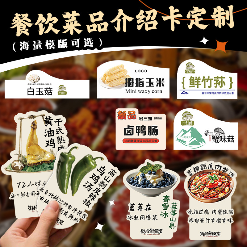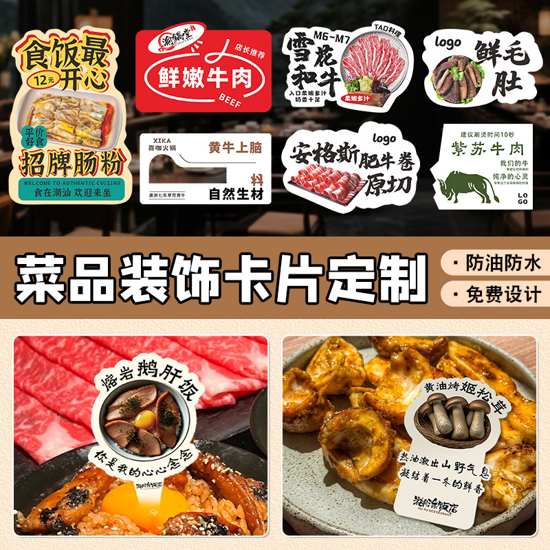 餐饮菜品标签牌火锅菌菇介绍卡片牛肉价格展示牌pvc菜牌制作