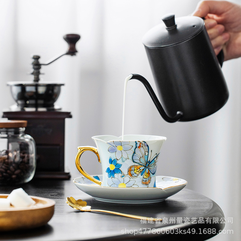 | 颜色 | 蝶恋花紫色咖啡杯+碟+勺【简装】 | 颜色 | 蝶恋花紫色咖啡杯+勺【简装】 |