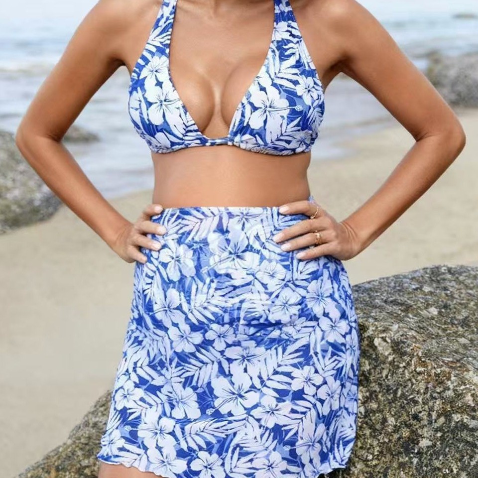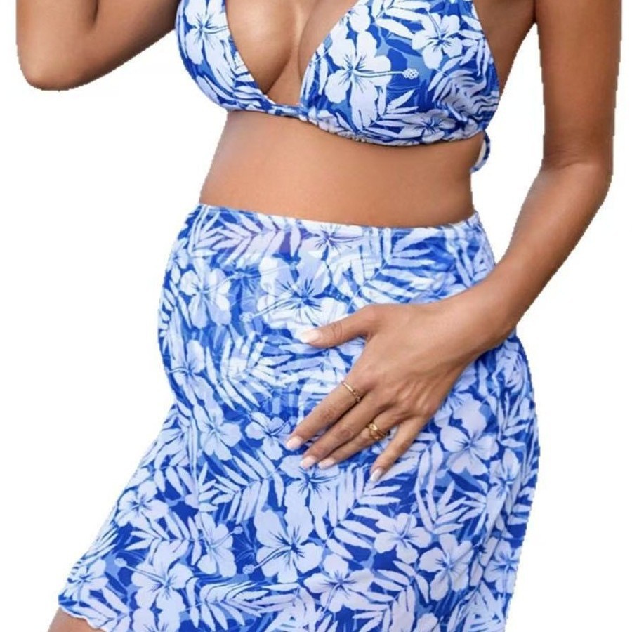 2025新款跨境欧美沙滩印花孕妇套装亚马逊外贸分体套装y泳衣女