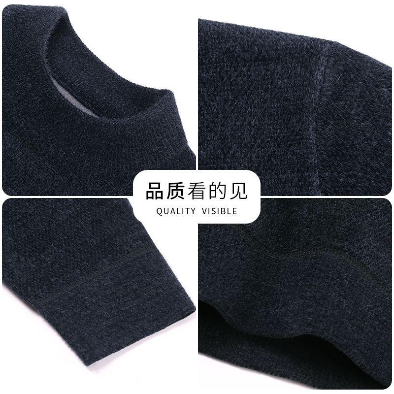 恒源祥毛衣男款雪尼尔加绒加厚打底衫秋冬季保暖针织中老年爸爸装