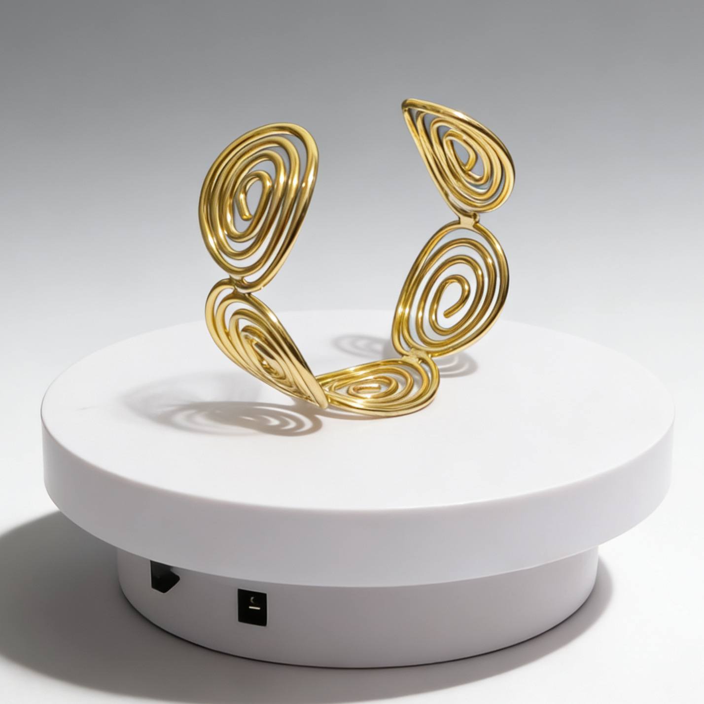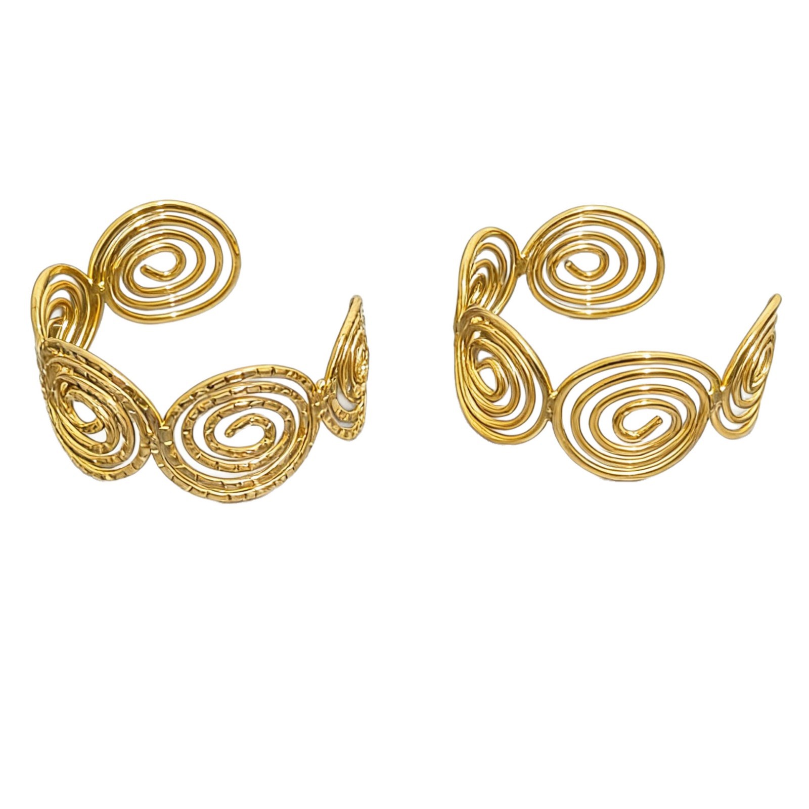 螺纹圆形开口金属色手镯环简约高级小众轻奢个性欧美跨境压花工艺