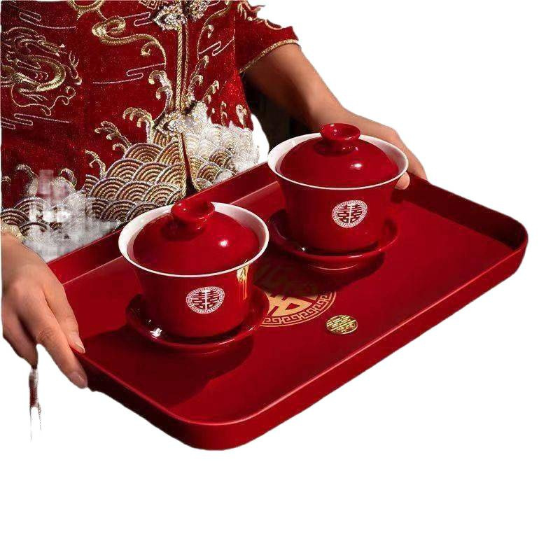 婚礼敬茶杯结婚全套改口杯盖碗喜碗套装红碗筷一整套喜事家用大全