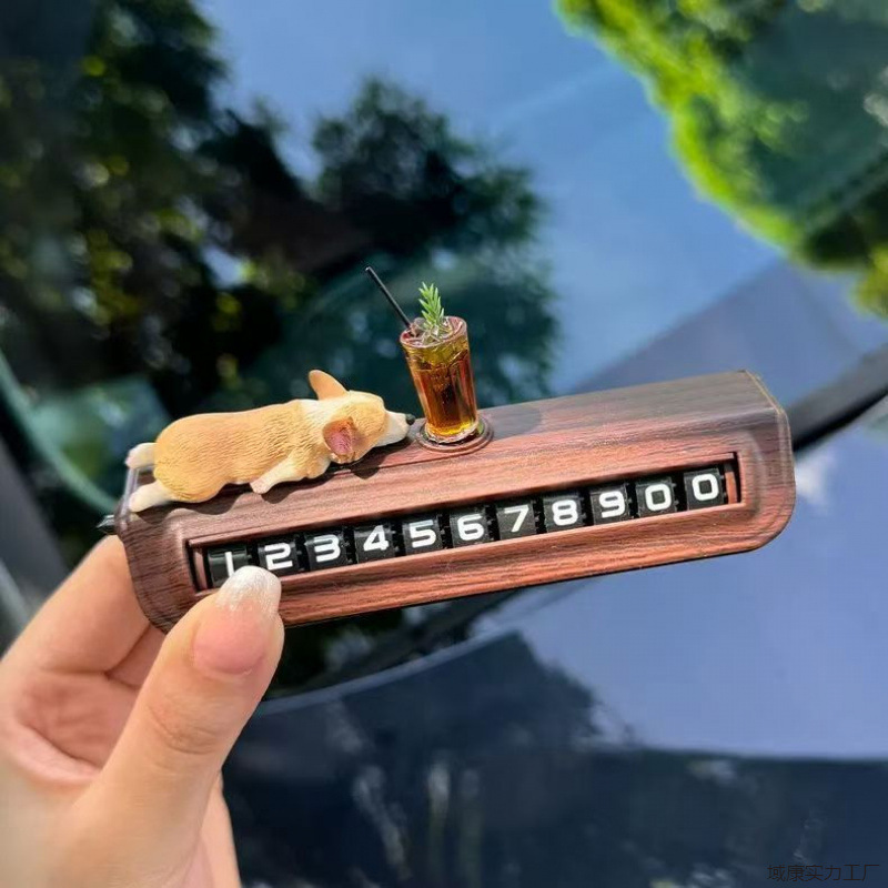 可爱柯基挪车电话牌高级木纹汽车内车载临时停车号码牌移批发包邮