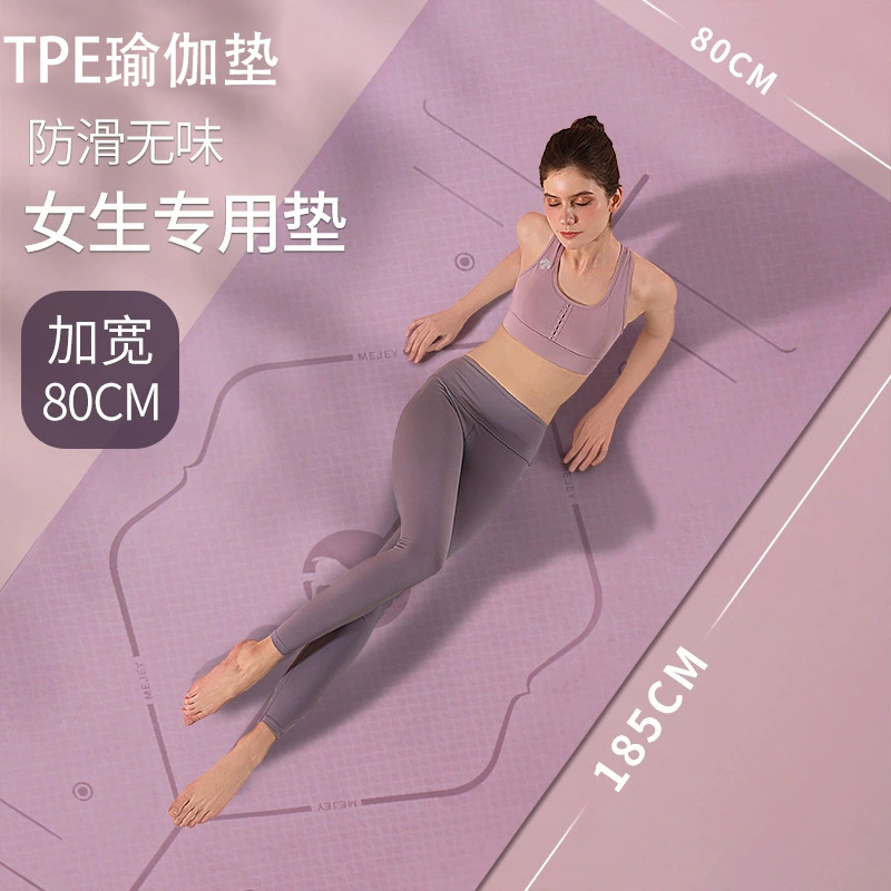 跨境TPE瑜伽垫防滑女加宽健身静音减震舞蹈墊家用加厚跳绳地垫子