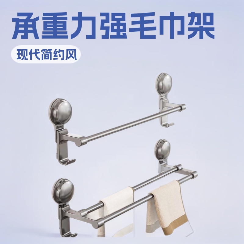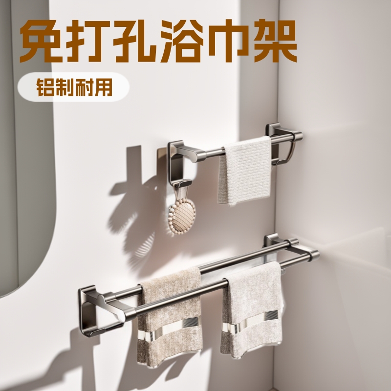 新款 毛巾架子卫生间免打孔浴巾架 壁挂式置物架厕所浴室单双挂架
