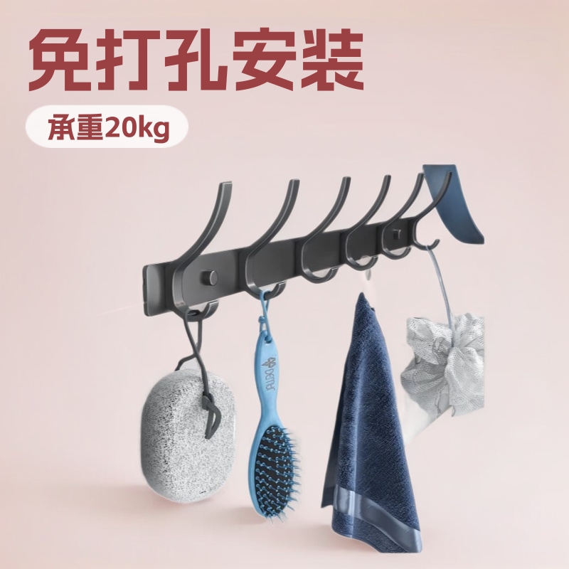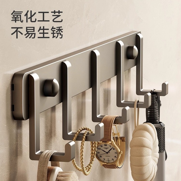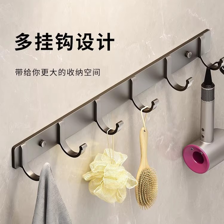 太空铝挂墙浴室挂墙式挂衣服毛巾门后排钩壁挂式免打孔卫浴收纳