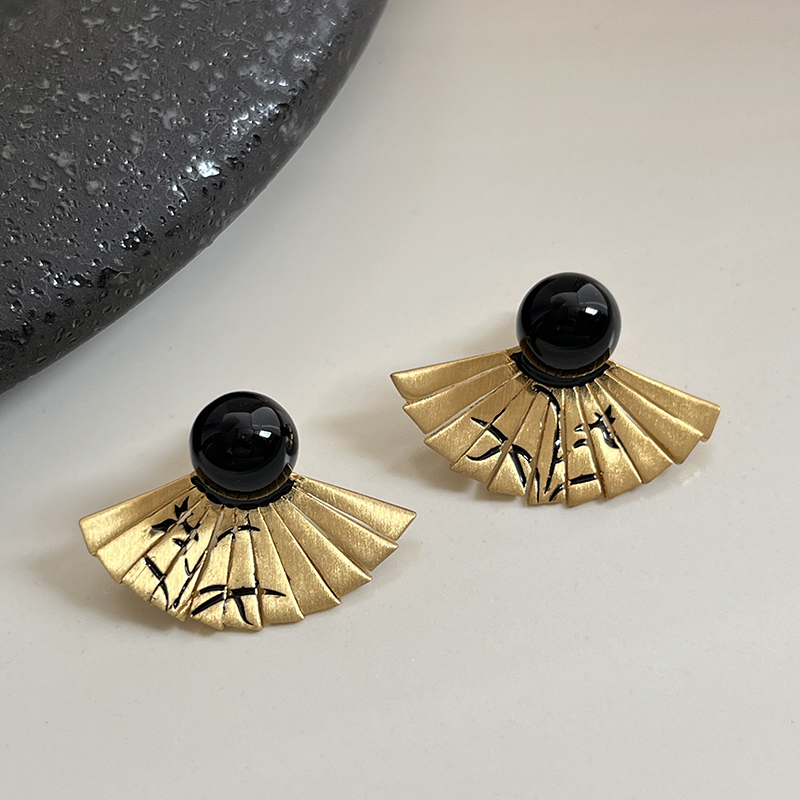 2026新中式扇耳环女轻奢小众设计高级感复古文艺气质大气耳钉耳饰
