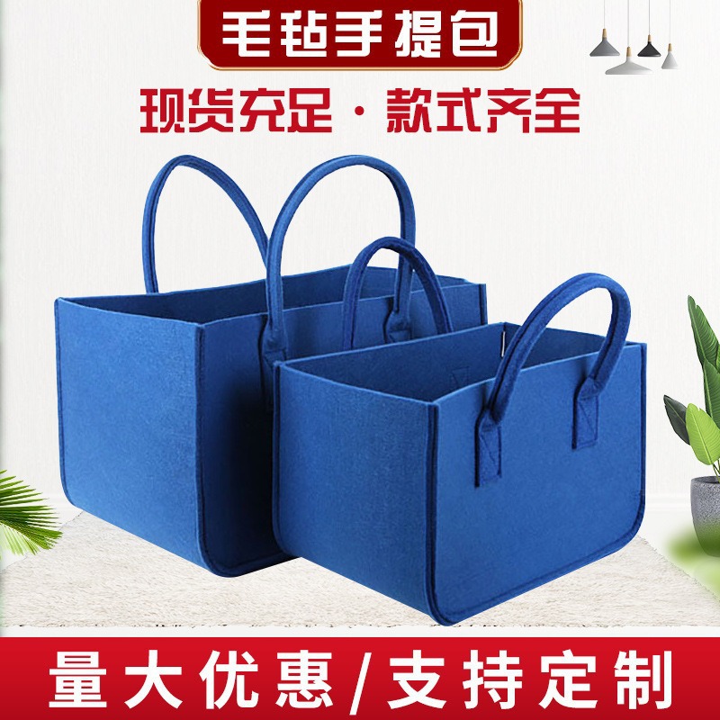 定制毛毡收纳袋简约纯色毛毡手提购物包杂物脏衣毛毡购物袋