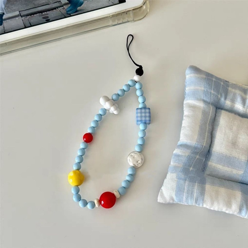 手机链条短款蓝色串珠diy防丢尼龙手腕绳相机专用高级感手机挂绳
