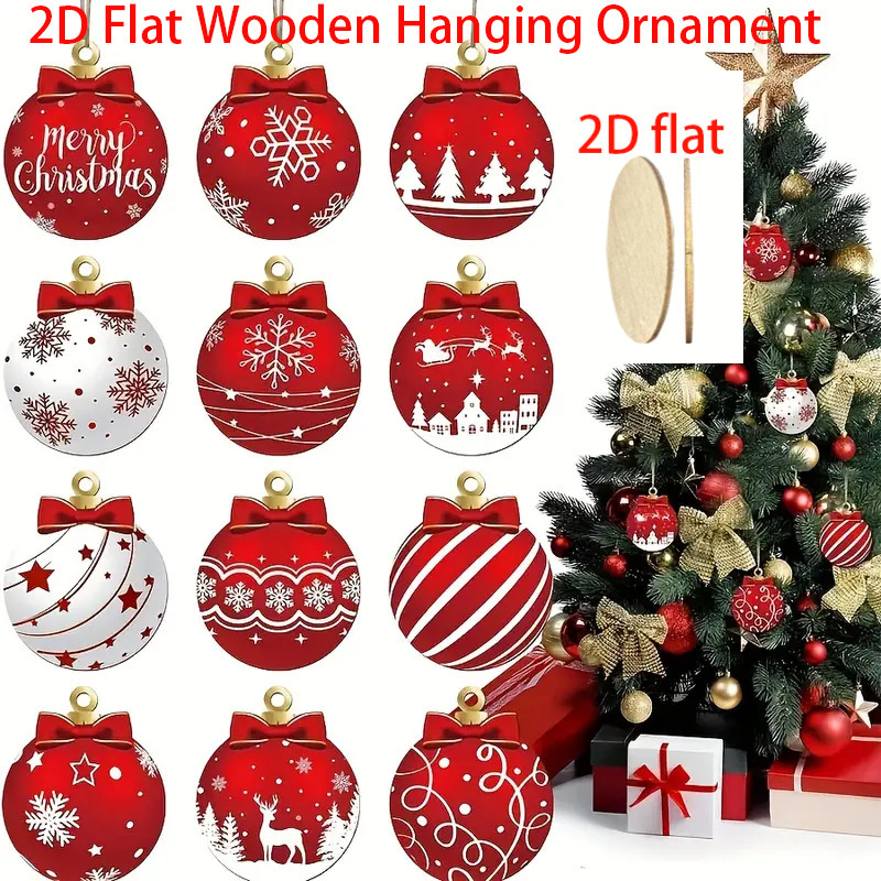 跨境圣诞球挂件 木质红球平面挂件圣诞节装饰 家居摆件布置家庭氛