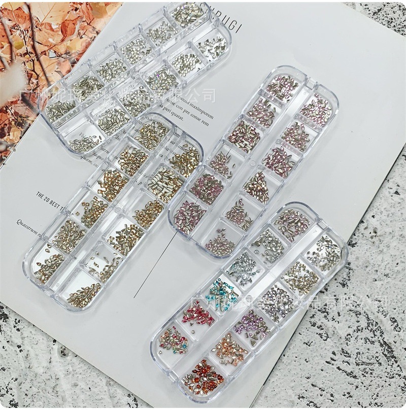 12格迷你倒边锆石平底异形美甲钻白色马眼尖底锆石大小圆形DIY钻