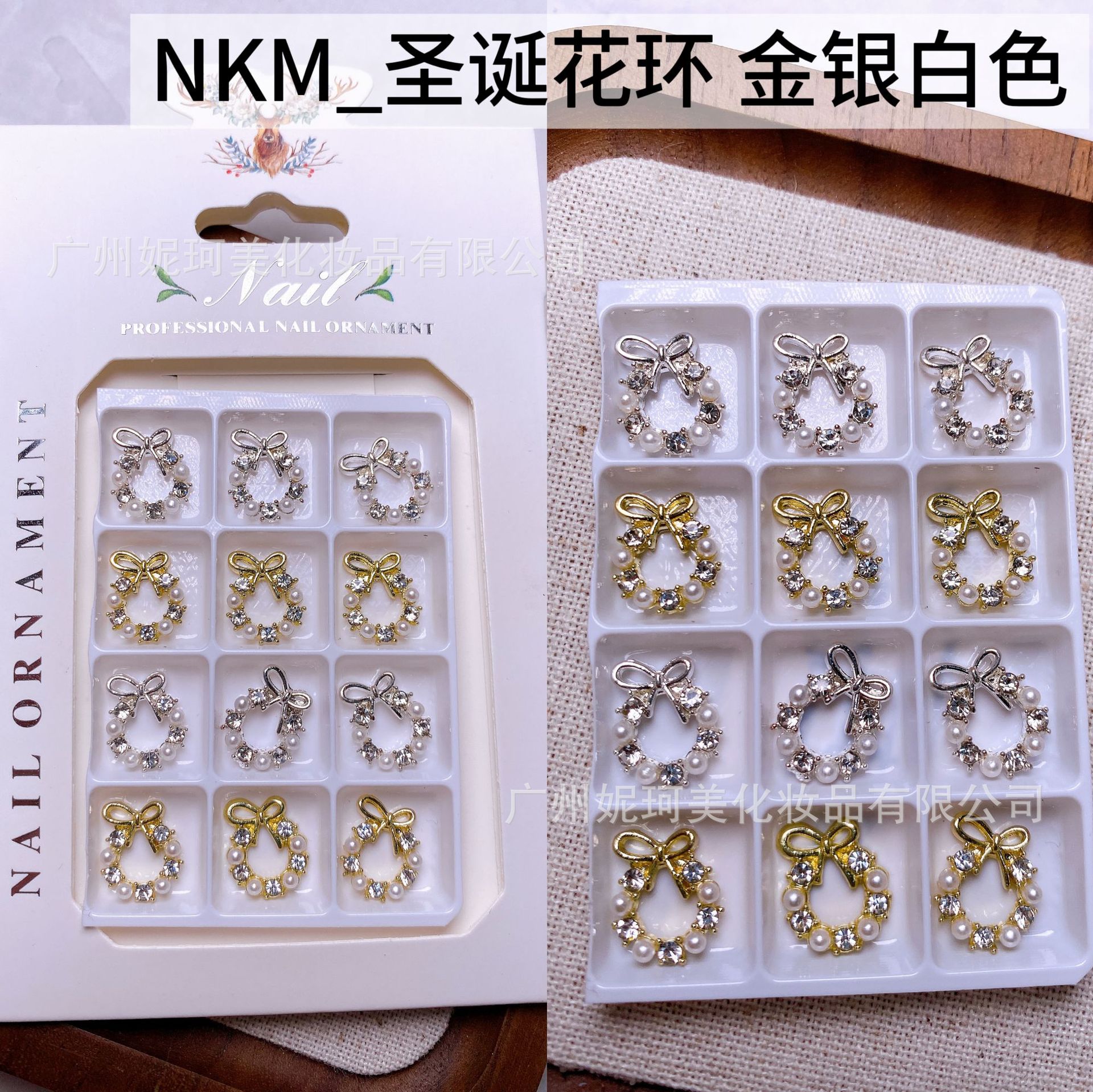 网红美甲钻饰超闪珍珠水钻圣诞花环小领结合金钻配饰批发