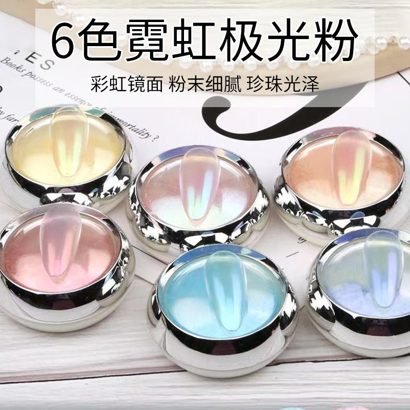 美甲专用固态魔镜粉6色眼影盘金银幻彩极光勾边水波纹镜面不飞粉