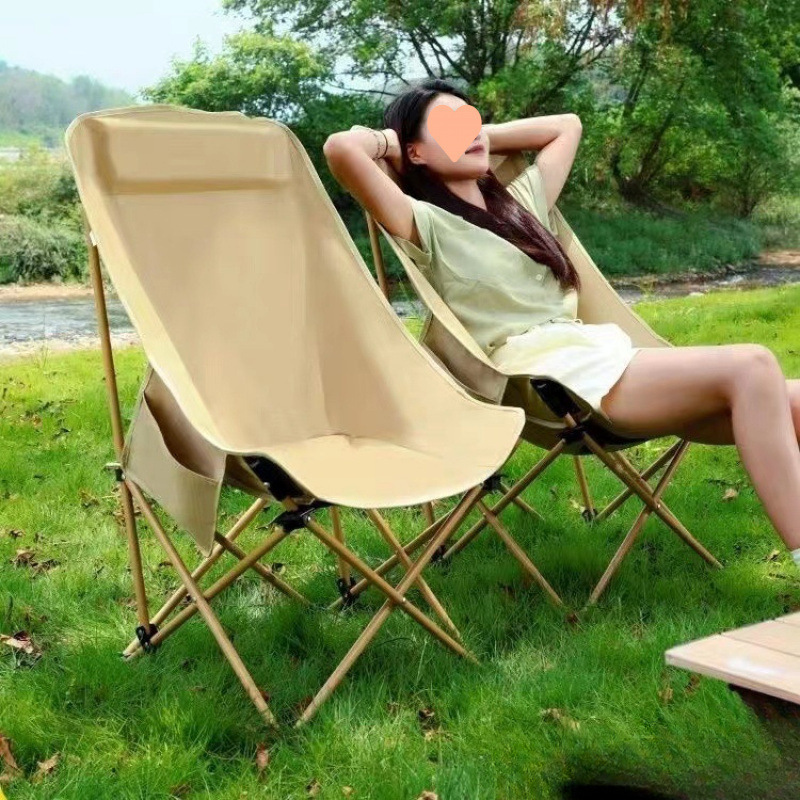户外加高款月亮椅折叠椅子便携式野外露营马扎懒人椅高靠背椅子..