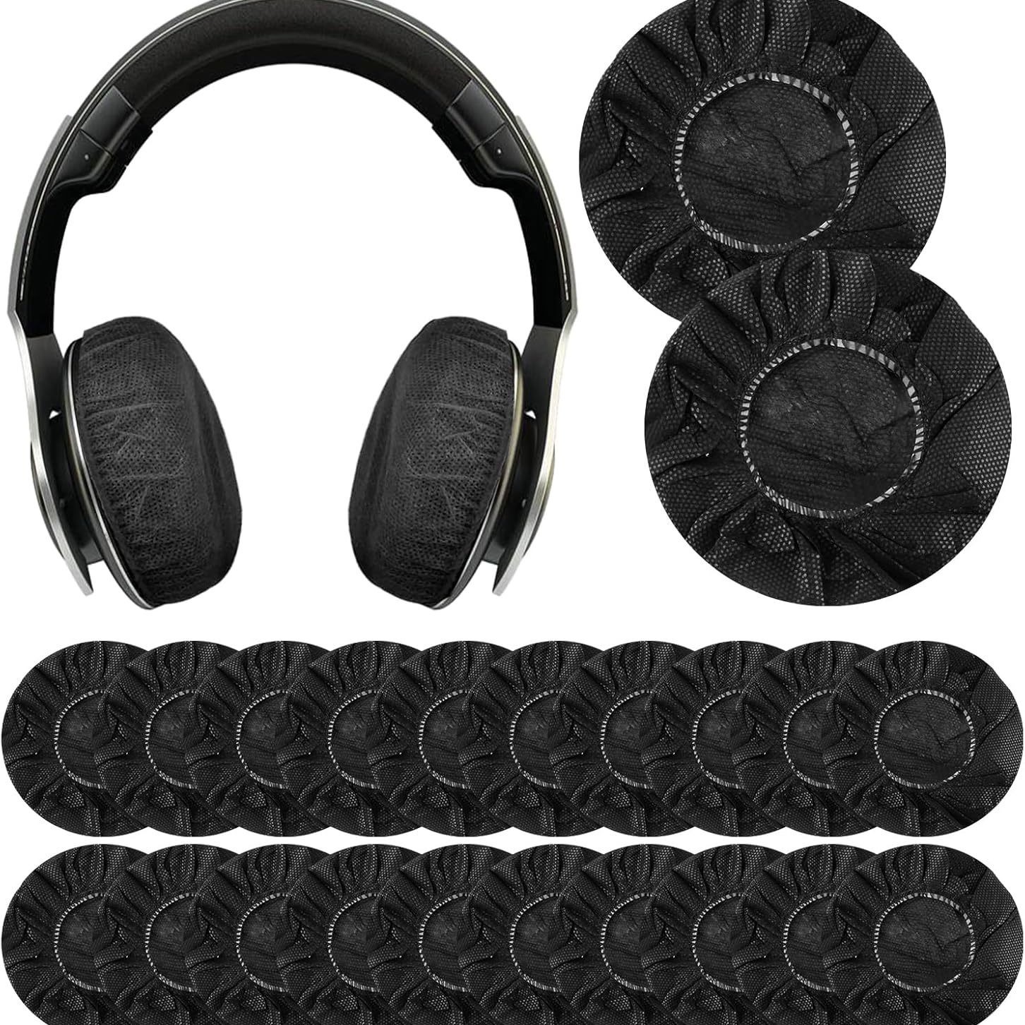 100PCS耳机耳塞套一次性耳机套卫生无纺布弹力耳机套黑色,2.5英寸