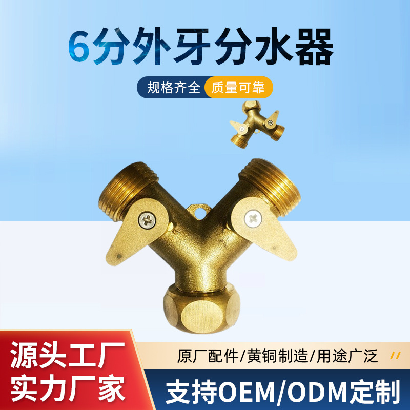 6分外牙分水器园林工具接头水枪水管软管快速接头三通浇花铜接头