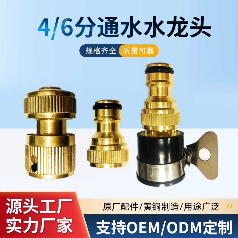 跨境4分轻型通水接头奶嘴防水水管接头园林工具花园水枪接头全铜