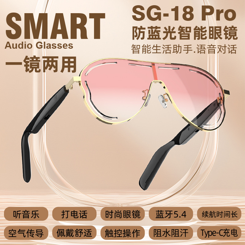 粉色款智能蓝牙音频眼镜SG18pro 太阳镜支持触摸可通话眼镜