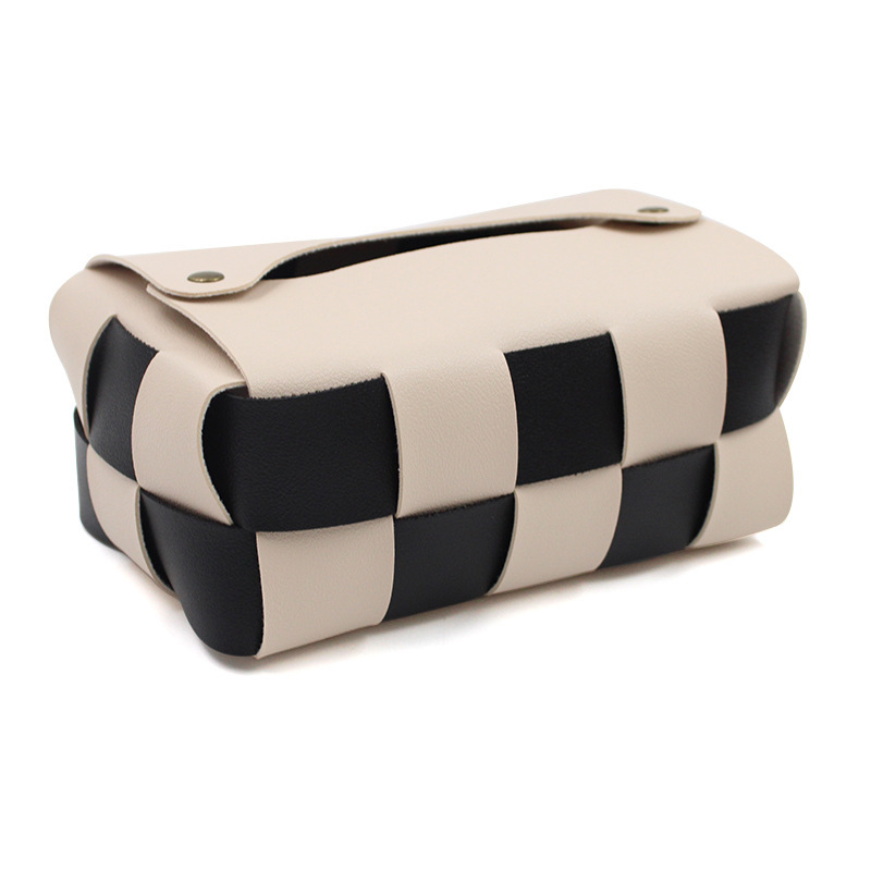 小号手工皮革编织黑白棋盘格纸巾盒 家用车载防水纸巾袋抽纸盒