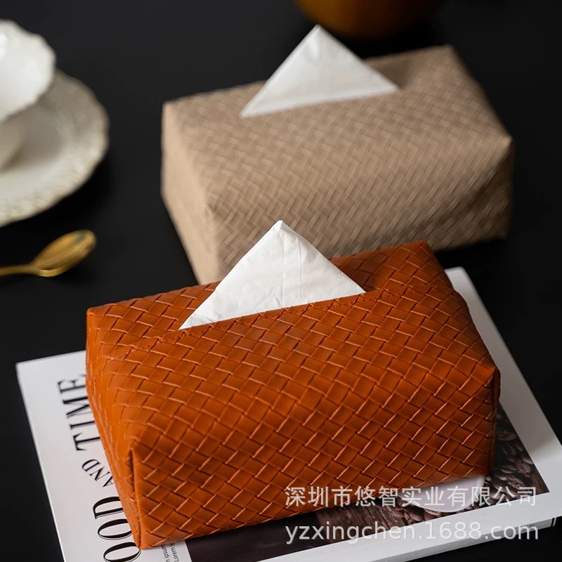 编织纹皮革纸巾盒家用茶几桌面纸巾盒车载纸巾盒套皮质纸巾包批发