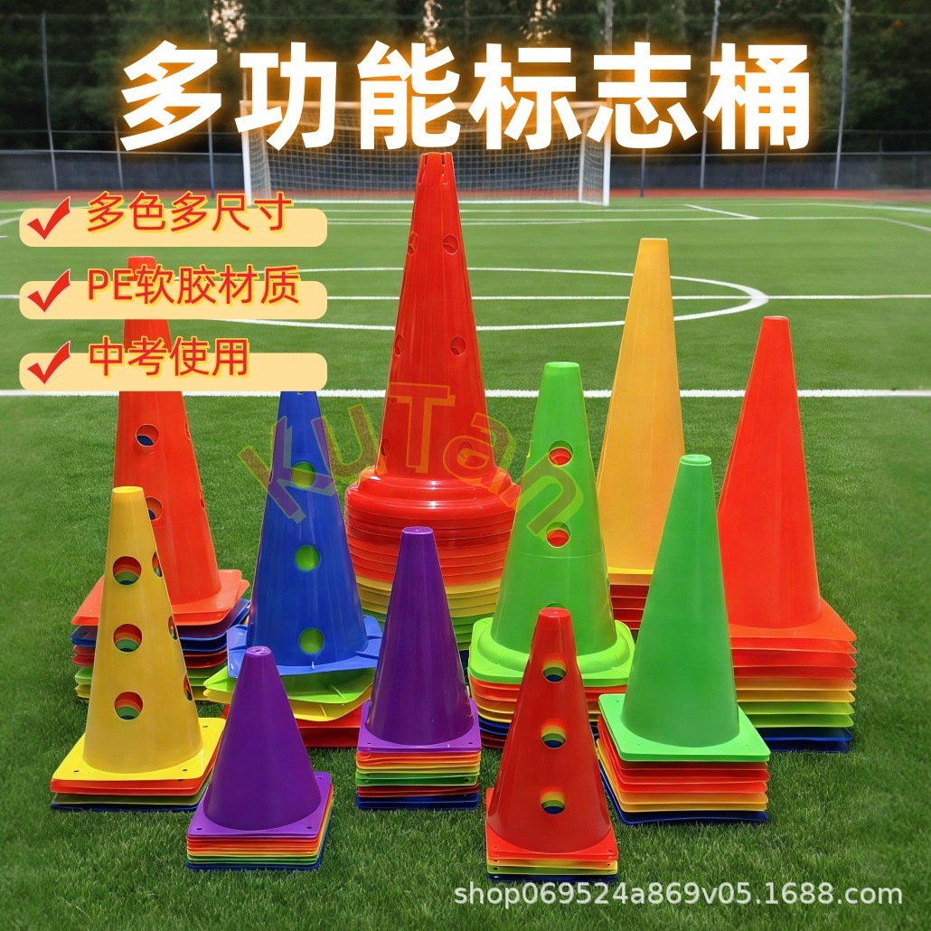 标志桶足球训练器材篮球控球障碍物塑料桶雪糕筒加厚有孔无孔锥桶