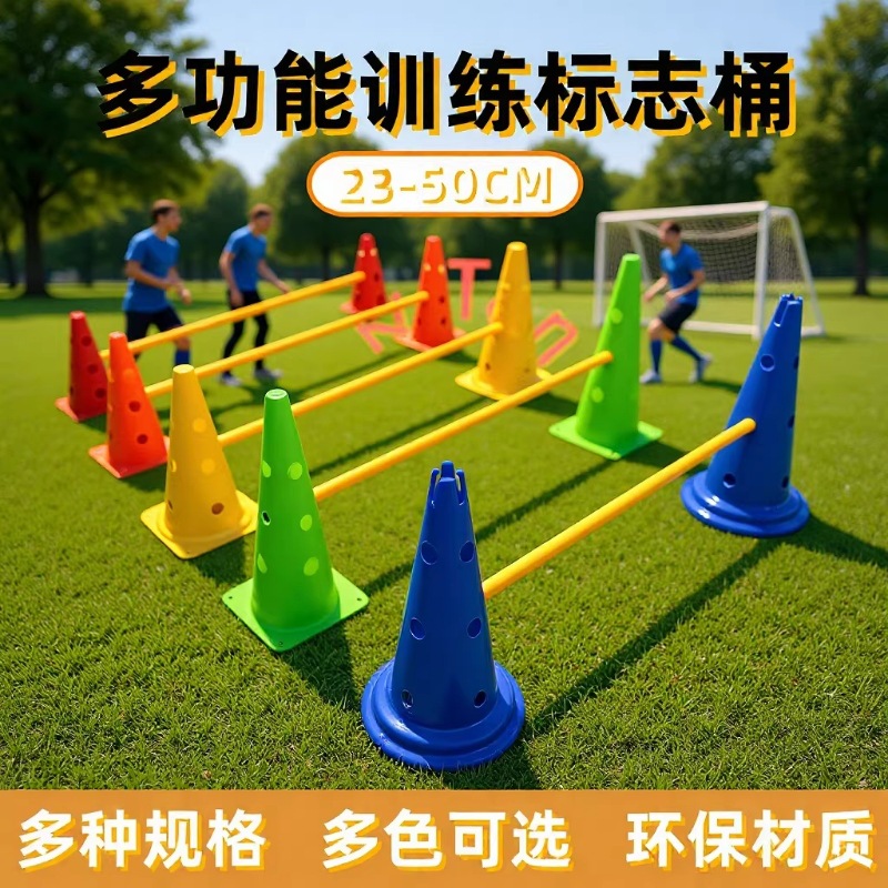 足球训练标志桶23-50cm带孔筒多功能标志锥雪糕桶障碍赛道标志杆