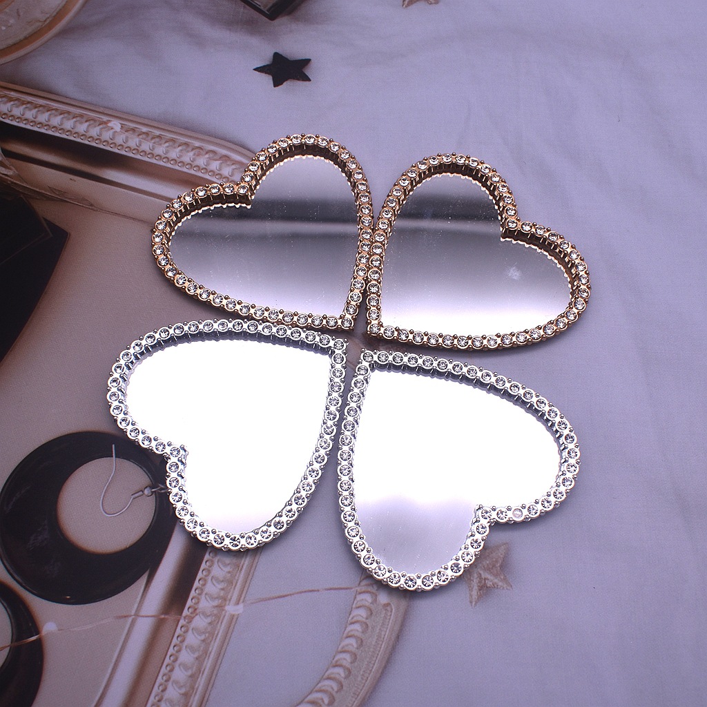 新款玻璃爱心镶钻镜子DIY手机壳饰品配件合金镜子手机美妆装饰