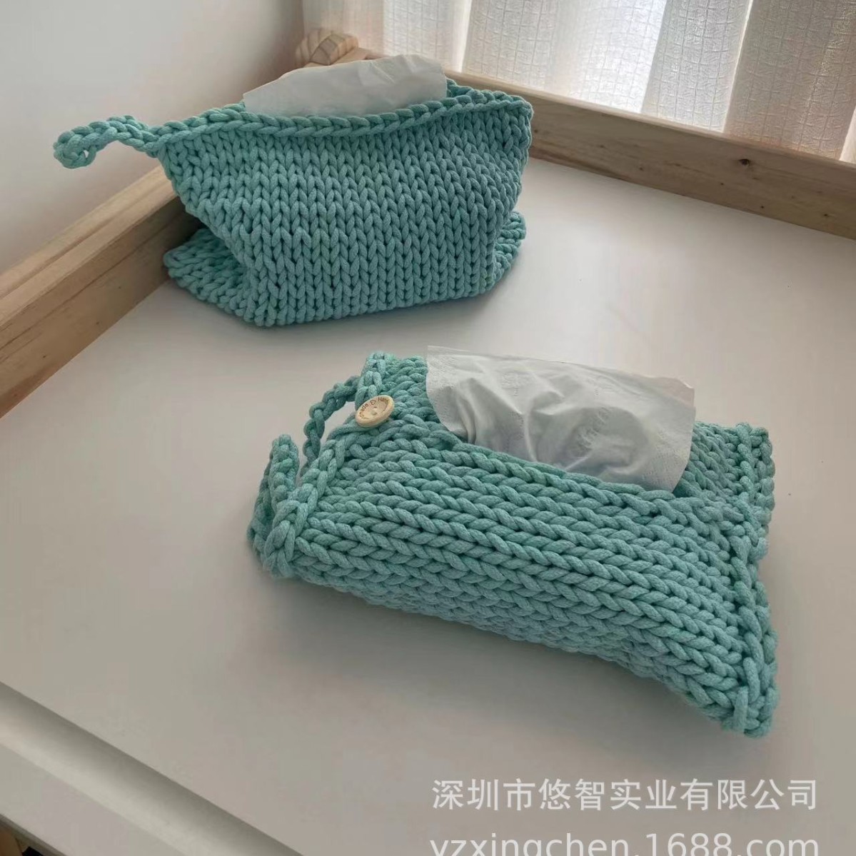 ins风针织毛绒纸巾袋梳妆台床头柜办公室书桌纸巾盒高级感纸巾挂