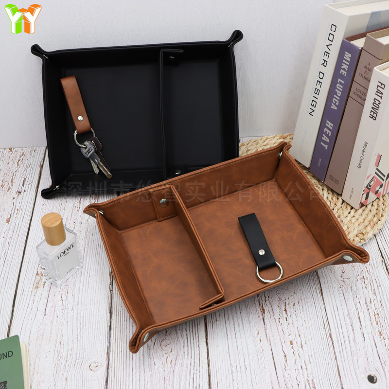现货复古皮质四角收纳盘玄关钥匙整理筐父亲节托盘小礼品可折叠
