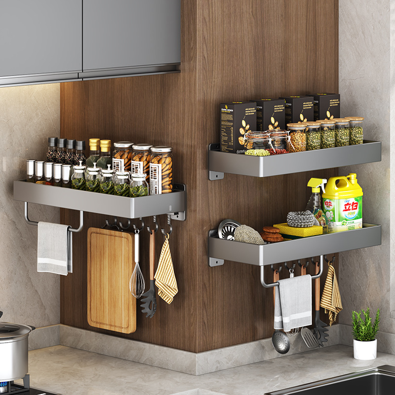 源头厂家厨房调料架壁挂免打孔微波炉架收纳置物防潮耐用台面扩容