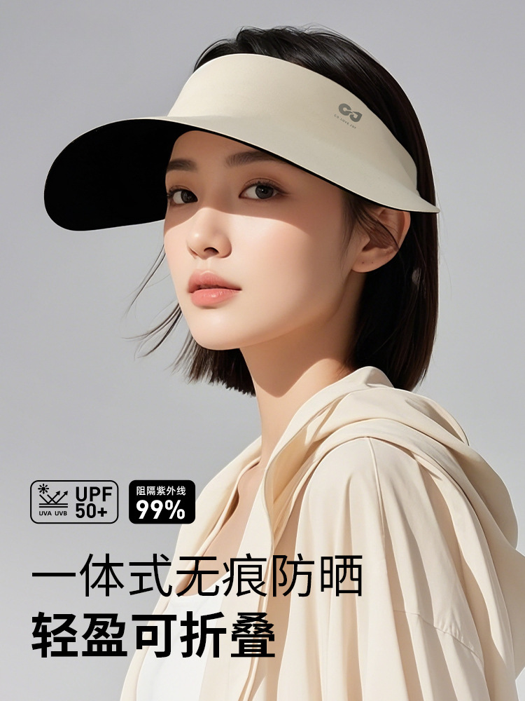 golovejoy防晒帽女夏季大帽檐空顶遮阳帽子可折叠太阳帽无痕一体