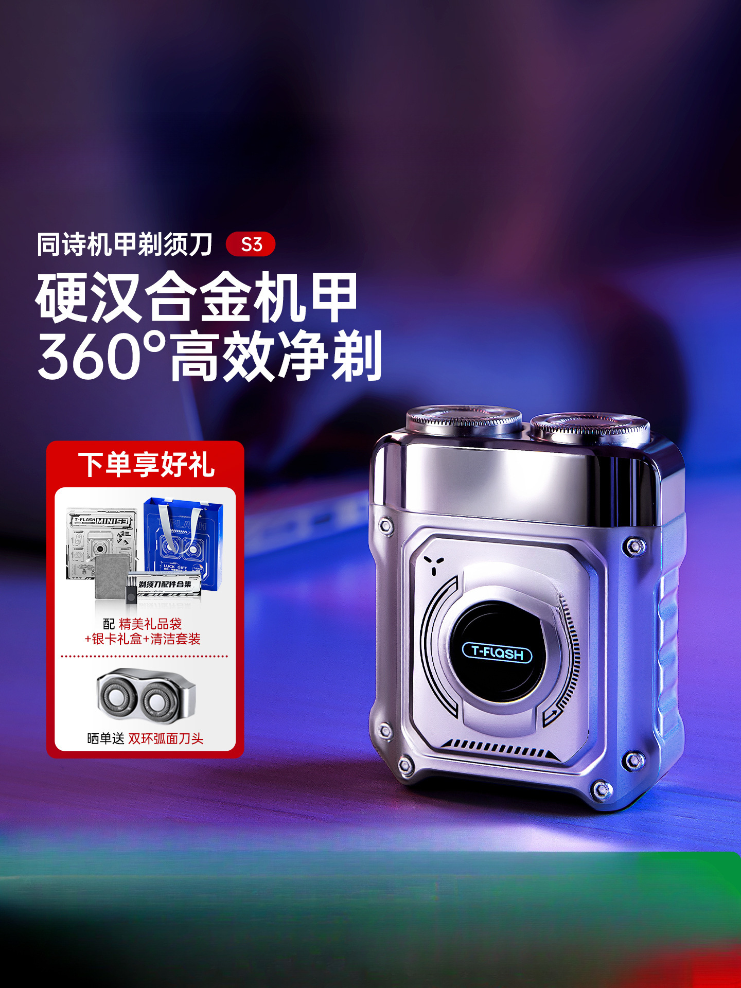 合金机甲剃须刀男士电动便携刮胡刀送男朋友生日礼物S3