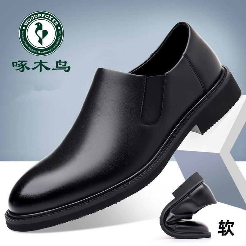 啄木鸟男鞋真皮商务休闲皮鞋男士一脚蹬英伦风尖头软底透气正装鞋