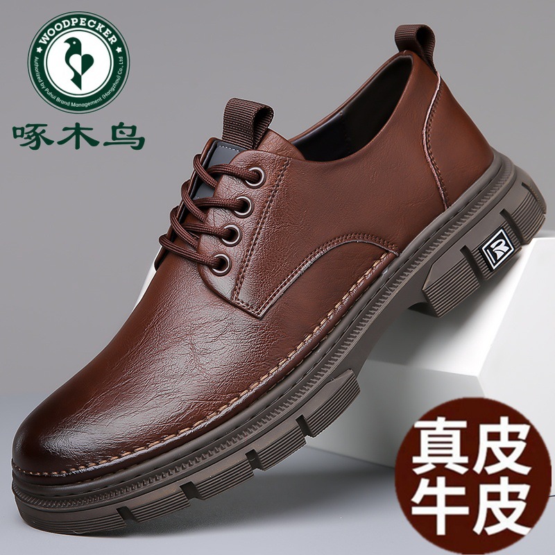 啄木鸟男鞋2025秋季新款潮流百搭英伦皮鞋男真皮软底透气休闲鞋潮