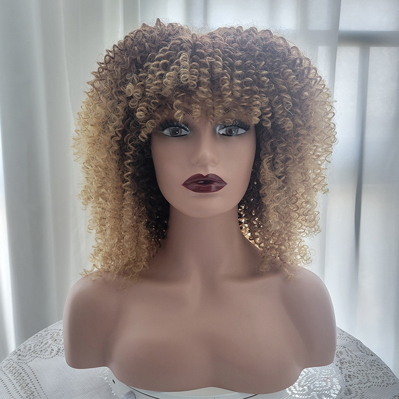 厂家直售欧美女士短卷发假发头套curly wigs非洲蓬松化纤假发头套