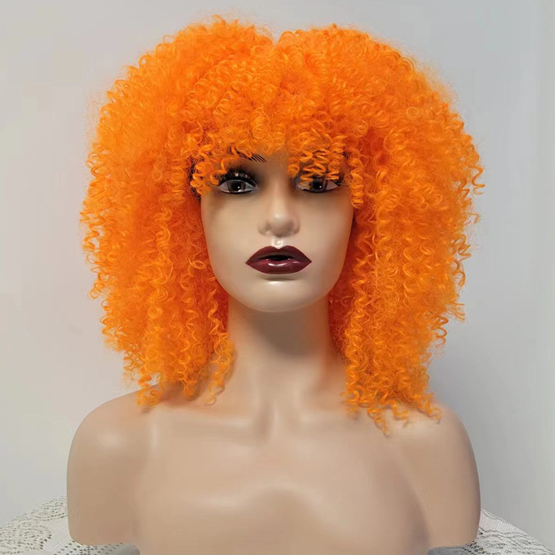 欧美化纤高温丝短假发头套 非洲女士小卷wig蓬松爆炸头短卷发头套