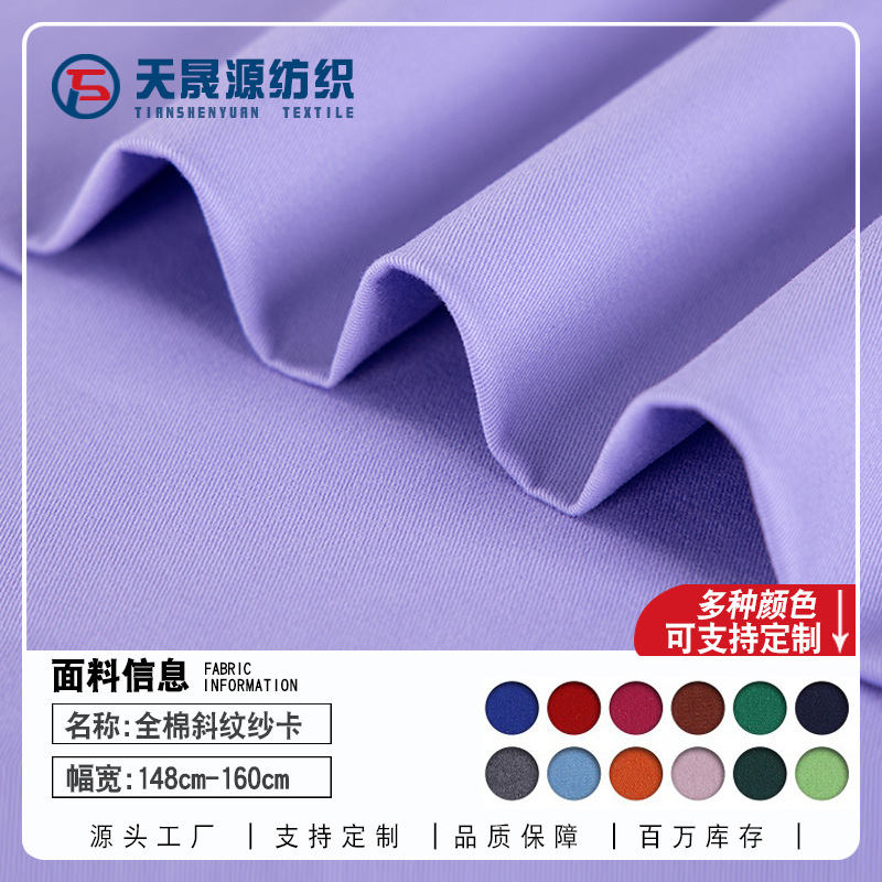 定制108*58水洗斜纹纯棉面料布 帽子工作服全棉斜纹纱卡梭织面料